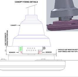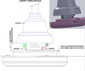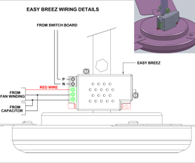 Step 2: Fix EasyBreez on fan shaft at the same position of existing slot Use the same screw hole on fan shaft to fix EasyBreez product. Insert capacitor in holder provided on EasyBreez Plastic.